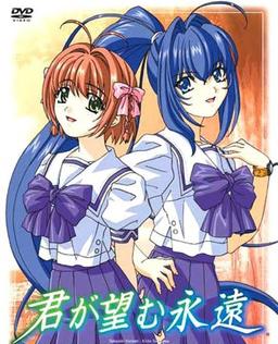 《愿此刻永恒》是由Studio Fantasia于2003年制作的电视动画,改编自AGE(アージュ)出品的同名PC游戏,于2003年10月4日至2004年1月3日每周六深夜24:50~25:20(东京时间)在埼玉电视台播出,全14集。 鸣海孝之是一位面临升学考试的高中三年级学生,每天平平凡凡地生活。他与同班的平慎二及游泳部主将速濑水月一直是好友的关系。后来他又认识了水月的好朋友凉宫遥。 一天,孝之被水月叫到了学校的山丘,但在那里等待他的并不是水月而是遥。遥向孝之表白。因为是水月牵线的关系,也不原意伤害到遥,孝之接受了表白。而同样对孝之有好感的水月,知道孝之和遥交往后却变得迷失。 在暑假的某一天,当孝之正赶往与遥约会的途中遇到了水月。她以生日的借口希望孝之买一只戒指作为生日礼物,然后恶梦开始了……当孝之来到约会地点时,看到一个已经在处理中的伤害现场以及一枚染血的蝴蝶结。为了等待迟到的孝之而遇上车祸的遥被送去医院后陷入了昏迷状态,再也没苏醒过来。 三年后,孝之放弃大学深造而成为餐厅侍应,水月放弃游泳而成为OL,两人过着同居生活。一天,孝之收到了遥苏醒的消息,但遥的记忆还停留在三年前。为了不影响遥的康复,孝之、水月及遥的家人不得不在时间上对遥进行隐瞒,而孝之需要扮演三年前遥的男朋友的身份。在探望遥的过程中,虽然声称出于负责感,孝之却对自己的感情变得迷茫了。水月和孝之的关系出现裂痕。影响三人命运的方向盘最终会转向何方?