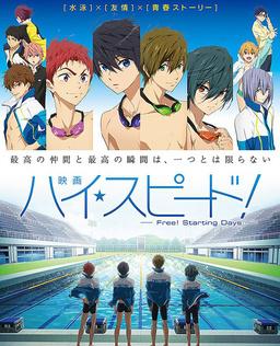 《High☆Speed! -Free! Starting Days-》是由轻小说《High☆Speed!》改编的首部剧场版动画,描绘主人公们初中时代的故事。电影于2015年12月5日起在日本上映,并于2016年2月19日起在中国台湾上映。 七濑遥对于与水相互接触、对水进行感触有着特别的心情。 在小学时代最后出场的大赛的混合接力赛中, 遥和橘真琴、叶月渚、松冈凛一起,到达了“从未见过的景色”——。 之后,在樱花盛开的春天。 遥和真琴一同升入了岩鸢中学。新的生活即将开始。 加入了游泳部的遥和真琴,与椎名旭、桐岛郁弥一起, 四个人组成混合接力的队伍,并以参加比赛为目标。 思考方式和目的各有不同的四个人。此外,他们也各自有着自己的烦恼。 在这种状况下,他们即使重复了多次的接力练习,也依然无法做到很好……。 成为“队伍”所必需的是什么。 心被囚禁在过去的接力赛中,遥对于新的场所又在想些什么——。 他们一点一点地了解着对方, 通过游泳而留意到了自己新的心意,将此情此景描绘出来的《电影 High☆Speed! -Free! Starting Days-》。 少年们充满水色的青春,伴随着游泳的未来,现在开始。