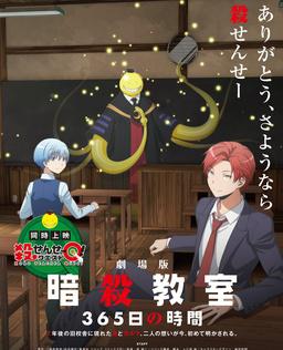《暗杀教室:365日倒数计时》是根据松井优征创作的漫画《暗杀教室》改编的动画电影,于2016年11月19日在日本上映,同年11月25日在台湾上映。 电影讲述了一个将月球炸掉7成、并扬言一年后将要毁灭地球的不明生物杀老师,担任全校最不被看好的班级3年E班的导师,与学生之间发生的故事。杀老师虽然是个有马赫级神速移动能力、以及奇怪触手的生物,却为学生竭尽心力、赴汤蹈火。使得本来弥漫诡异氛围的课堂,却成为3年E班终生难忘的回忆。而3年E班的同学们与杀老师以羁绊和真挚互动所守护的约定,也陪伴着他们到了7年后的未来。