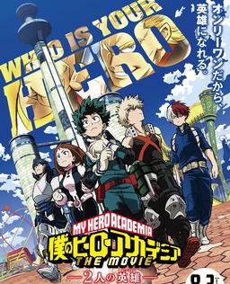 动画电影《我的英雄学院 ~2人的英雄~》改编自堀越耕平创作的漫画作品《我的英雄学院》。电影由Bones负责制作,于2018年8月3日在日本上映。中国香港由羚邦代理,于同年11月8日上映;中国大陆由羚邦代理,上映时间待定。 紧张的期末考结束了之后,雄英高中的同学们等待着暑假的林间集训。 绿和All Might获得某个大人物的邀请,造访位于海外的巨大移动都市“ I·ISLAND”。 如同科学好莱坞一样的“ I·ISLAND”岛上正举行集合世界各地精英科学家智慧的关于英雄个性研究成果的展览,绿谷在岛上与同样“无个性”的少女·梅丽莎相遇了。 同时,一直以有如铁墙般坚实的安全系统为荣的I岛的防卫系统被敌人黑客入侵。岛上的所有人都被捉了做人质! 现在,动摇了英雄社会的结构的“那个计划”要启动了!