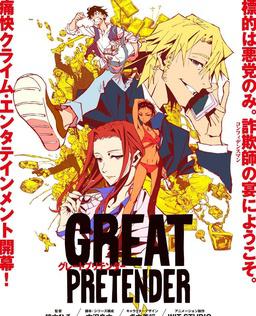 《GREAT PRETENDER》是由WIT STUDIO制作的原创电视动画,于2020年7月播出。 目标只有坏人!欺骗、欺骗、欺骗!?洛杉矶、新加坡、伦敦、上海、还有东京…横跨世界的壮大“欺诈游戏”,就此开幕! 自称“日本第一的天才欺诈师”的枝村真人,某天与搭档工藤2人一起欺诈了来浅草观光的法国人,赚了一笔钱……本该是这样的,却反而被骗走了巨款。那个男人是罗兰・帖礼,一个能将黑手党都玩弄于掌的欺诈师。枝村被卷入了罗兰设计数个规模不一的“欺诈游戏”中!